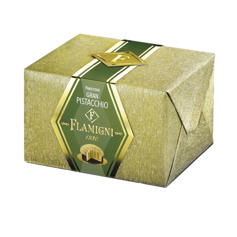 The golden wrapping of this culinary masterpiece gives a sense of luxury and festivity, making the Gran Pistacchio Panettone not only a treat for the palate but also an extraordinary gift to share the warmth of holidays with friends and family. This panettone perfectly expresses Christmas elegance and refined taste.
