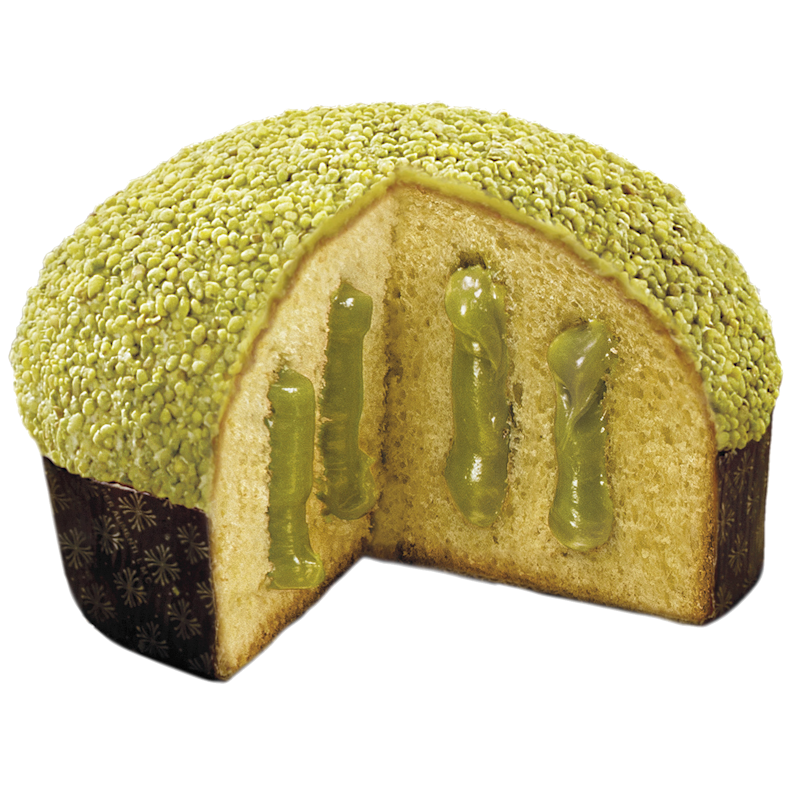 Each slice of Gran Pistacchio Panettone offers a perfect combination of taste and texture. The carefully prepared pistachio cream blends harmoniously with the soft, naturally leavened dough. White chocolate and pistachio grains complete this delight for the palate.